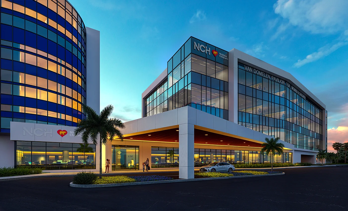 The Van Domelen Pavilion for Women & Children will be a four-story, 156,000-square-foot center of clinical excellence built above the existing emergency departments at NCH North Naples Hospital. It will bring advanced, comprehensive women’s and pediatric care together under one roof so families can stay close to home when it matters most.